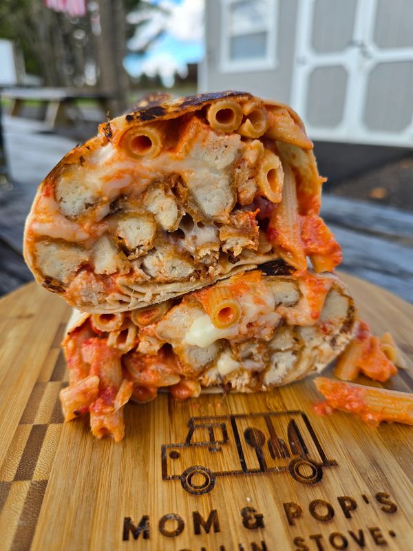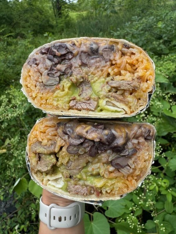 Choice of Chicken or Steak on a Flour Tortilla with Authentic Mexican Rice, Cheese, Beans, Guacamole and Sour Cream. Served with Fries.