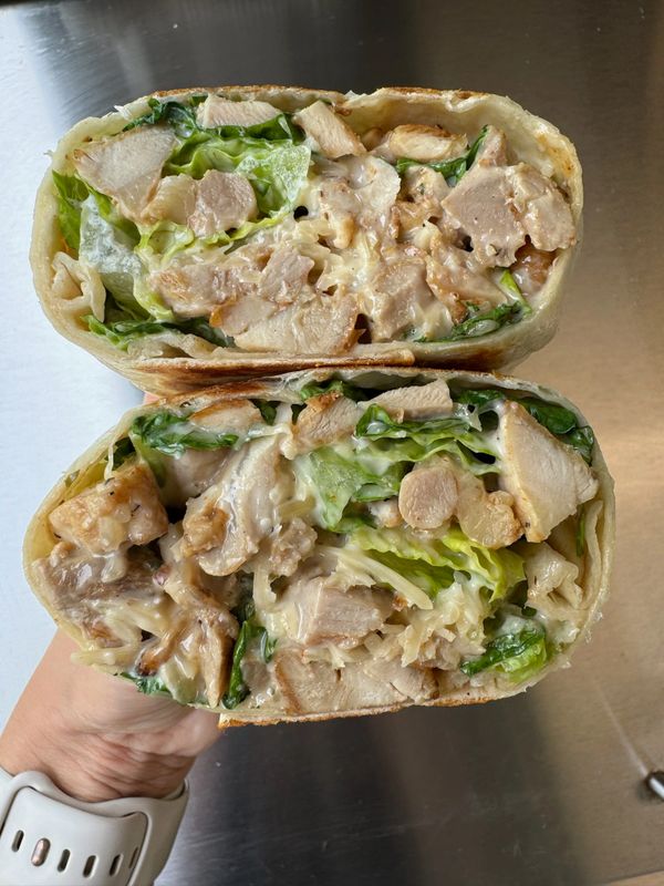 Chopped Romaine Hearts, Shaved Parmesan Flakes and Diced Grilled Chicken Breast all Tossed in a Creamy Caesar Dressing.