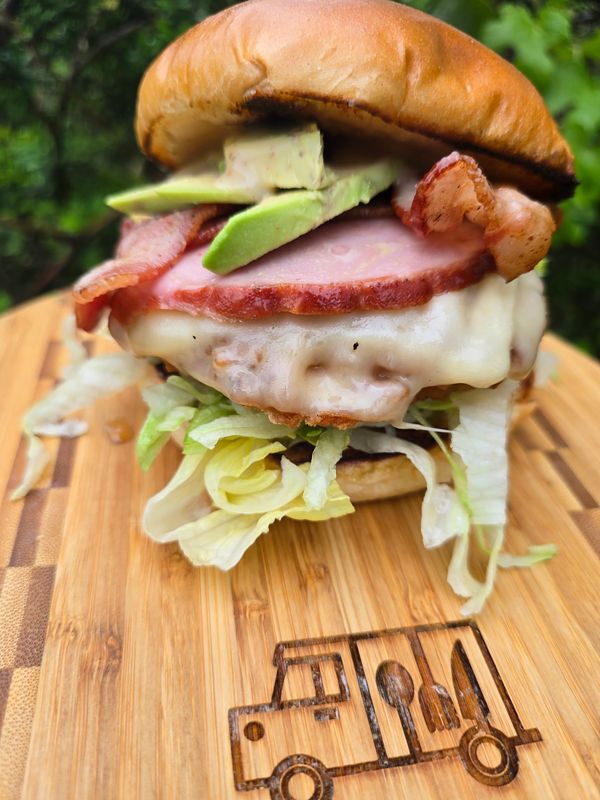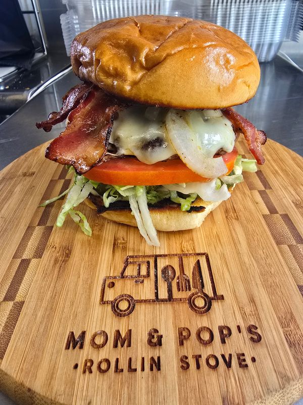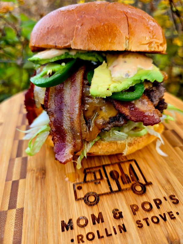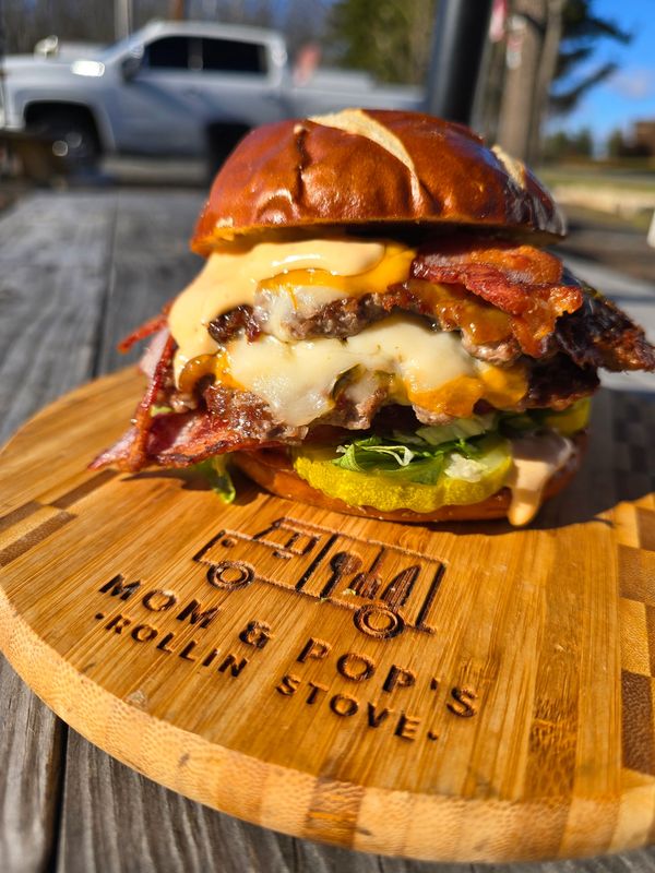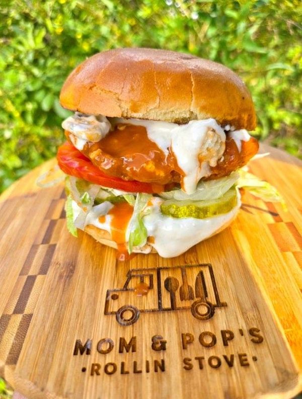 Breaded Chicken Breast topped with Pepperjack Cheese, Bacon, Lettuce, Tomato and Corey's Pickles on a Brioche Bun Lathered in a House Sauce.