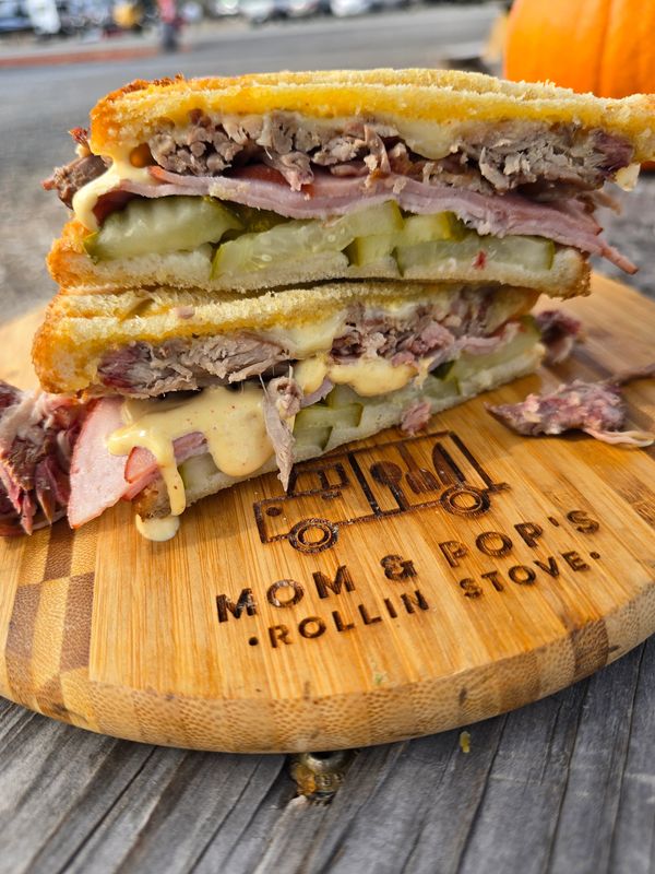 Sliced Corned Beef topped with Sauerkraut, Swiss Cheese and Thousand Island Dressing on Toasted Rye Bread.